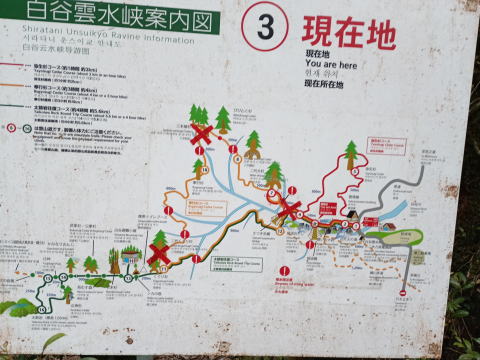 スタートは白谷雲水峡駐車場から管理棟のある入口→さつき吊橋→白谷小谷→苔むす森→太鼓岩→来た道を戻ります。