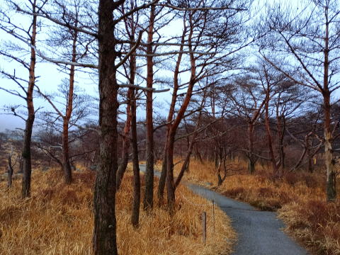 周りの木々はガスの影響でしょうか、枯れています。