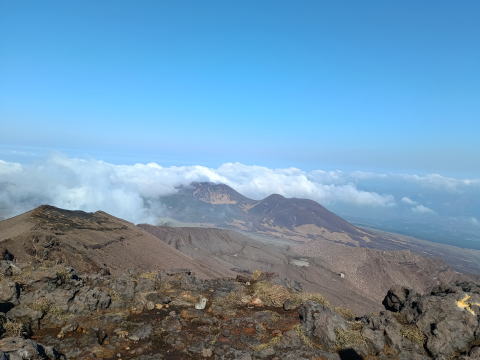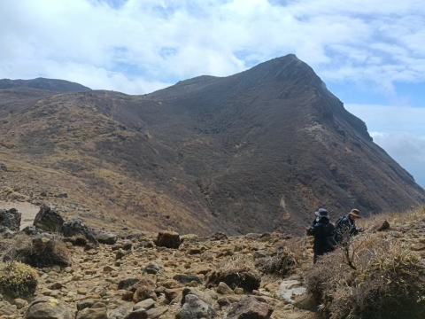 九重山は久住山を主峰とする火山群の総称で、稲星山、星生山、中岳などがあり、最高峰は1,791mの中岳です。